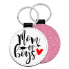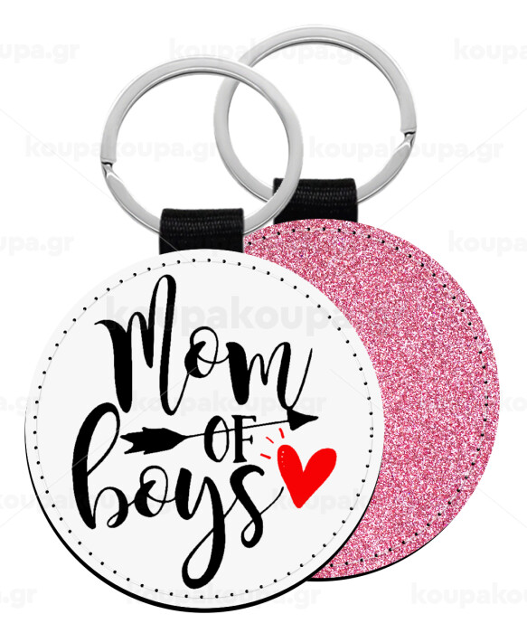 Mom of boys, Μπρελόκ Δερματίνη, στρογγυλό ΡΟΖ (5cm)