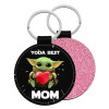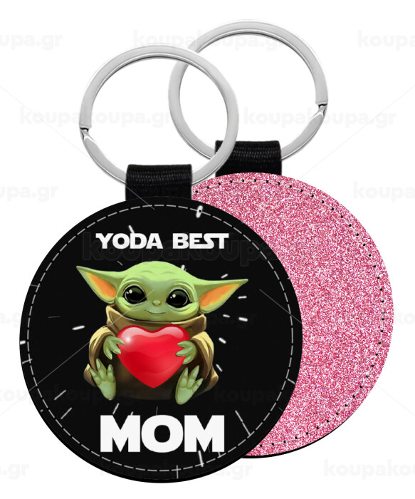 Yoda Best mom, Μπρελόκ Δερματίνη, στρογγυλό ΡΟΖ (5cm)