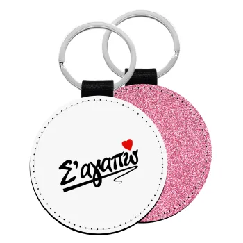Σ΄ αγαπώ!!!, Μπρελόκ Δερματίνη, στρογγυλό ΡΟΖ (5cm)