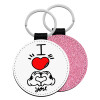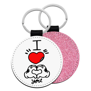 comics hands love, Μπρελόκ Δερματίνη, στρογγυλό ΡΟΖ (5cm)