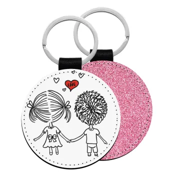 Hold my hand for ever, Μπρελόκ Δερματίνη, στρογγυλό ΡΟΖ (5cm)