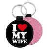I Love my Wife, Μπρελόκ Δερματίνη, στρογγυλό ΡΟΖ (5cm)