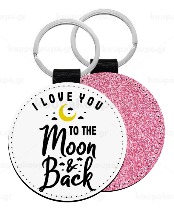 I love you to the moon and back, Μπρελόκ Δερματίνη, στρογγυλό ΡΟΖ (5cm)
