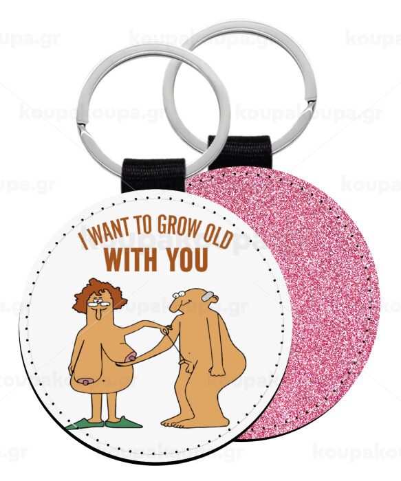 I want to grow old with you, Μπρελόκ Δερματίνη, στρογγυλό ΡΟΖ (5cm)