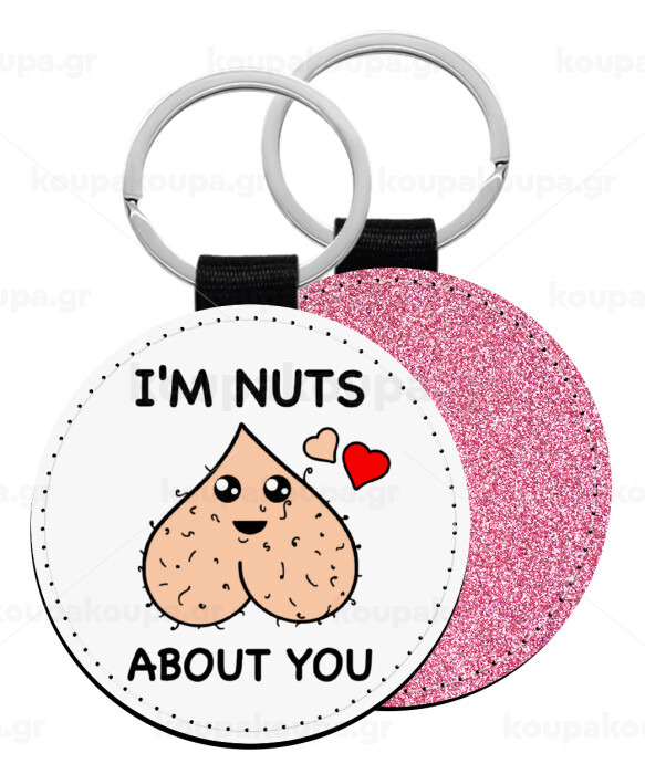 I'm Nuts About You, Μπρελόκ Δερματίνη, στρογγυλό ΡΟΖ (5cm)
