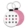 Love is Love, Μπρελόκ Δερματίνη, στρογγυλό ΡΟΖ (5cm)