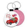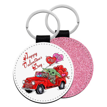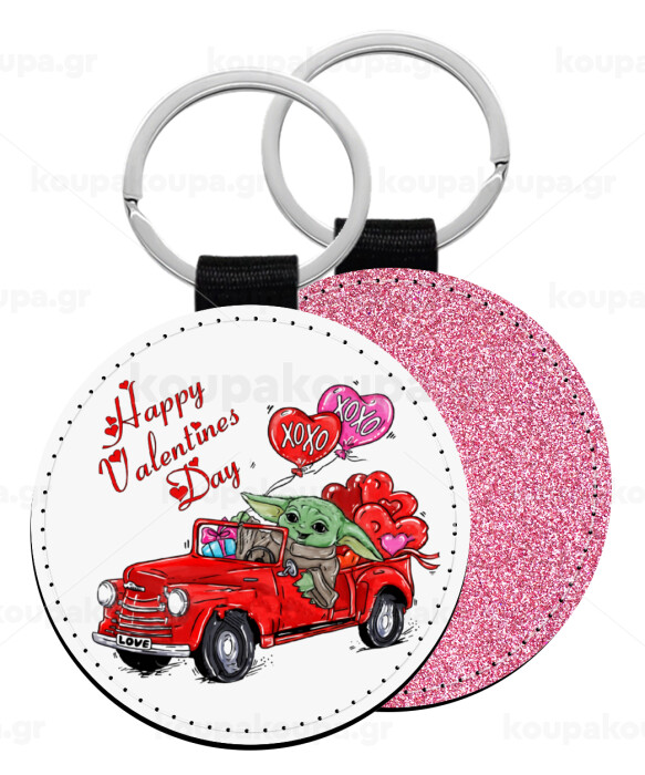 Yoda, happy valentines day (xoxo), Μπρελόκ Δερματίνη, στρογγυλό ΡΟΖ (5cm)