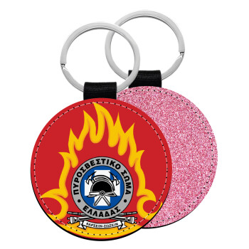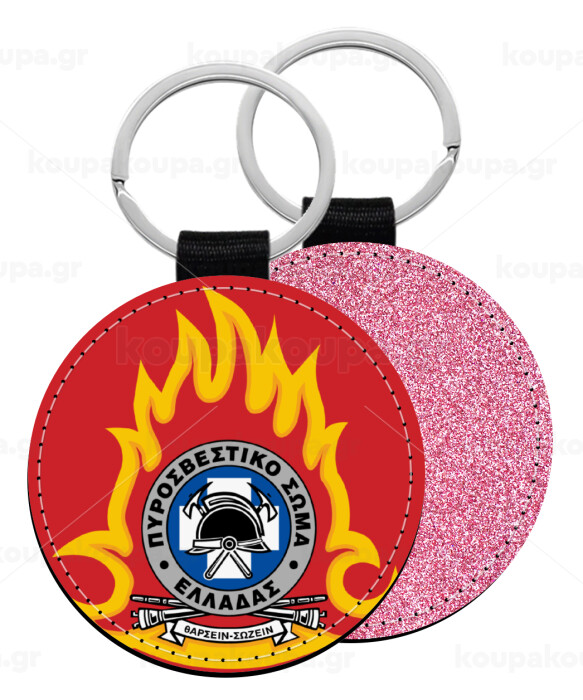 Πυροσβεστικό σώμα Ελλάδος, Μπρελόκ Δερματίνη, στρογγυλό ΡΟΖ (5cm)