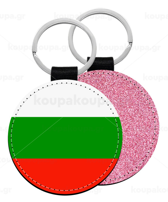 Bulgaria flag, Μπρελόκ Δερματίνη, στρογγυλό ΡΟΖ (5cm)