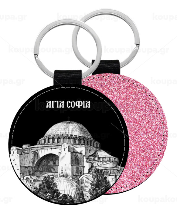 Αγία Σοφιά, Μπρελόκ Δερματίνη, στρογγυλό ΡΟΖ (5cm)