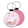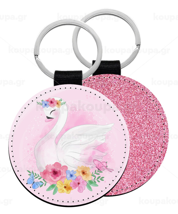 Λευκός κύκνος, Μπρελόκ Δερματίνη, στρογγυλό ΡΟΖ (5cm)