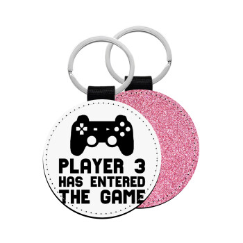 BABY, MOMMY, DADDY Low battery, Μπρελόκ Δερματίνη, στρογγυλό ΡΟΖ (5cm)
