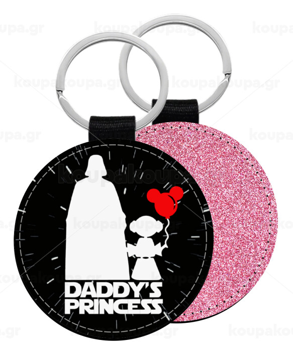 Daddy's princess, Μπρελόκ Δερματίνη, στρογγυλό ΡΟΖ (5cm)