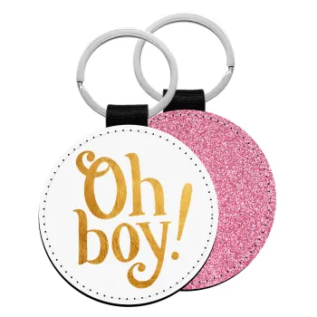 Oh baby gold, Μπρελόκ Δερματίνη, στρογγυλό ΡΟΖ (5cm)