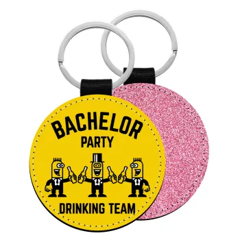 Bachelor Party Drinking Team, Μπρελόκ Δερματίνη, στρογγυλό ΡΟΖ (5cm)