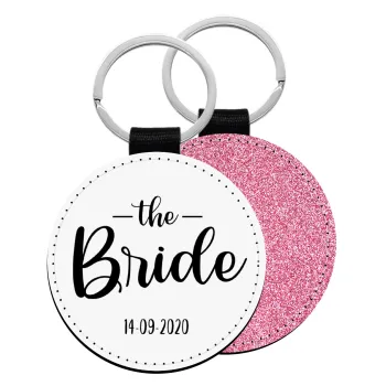 Groom & Bride (Bride), Μπρελόκ Δερματίνη, στρογγυλό ΡΟΖ (5cm)