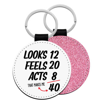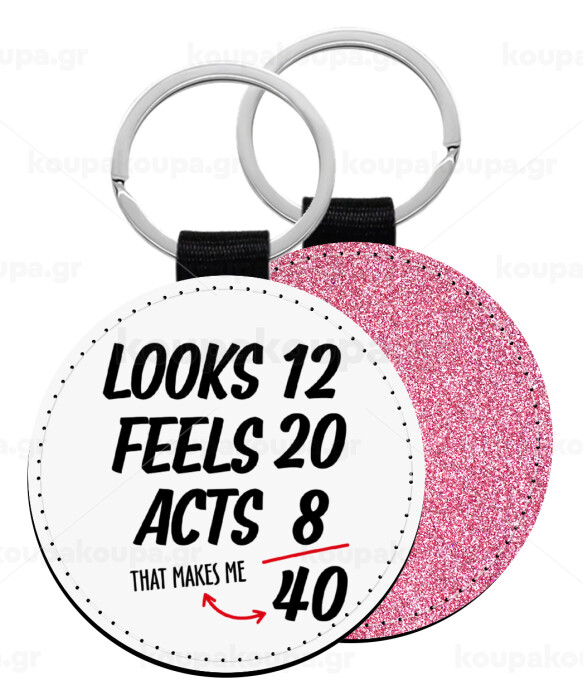 Looks, feels, acts LIKE your AGE, Μπρελόκ Δερματίνη, στρογγυλό ΡΟΖ (5cm)