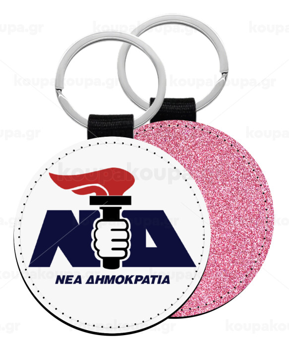 Νέα δημοκρατία κλασική, Μπρελόκ Δερματίνη, στρογγυλό ΡΟΖ (5cm)