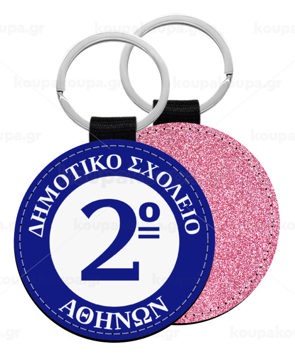 Έμβλημα Σχολικό μπλε, Μπρελόκ Δερματίνη, στρογγυλό ΡΟΖ (5cm)