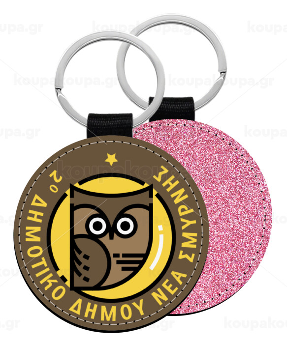 Έμβλημα Σχολικό brown, Μπρελόκ Δερματίνη, στρογγυλό ΡΟΖ (5cm)