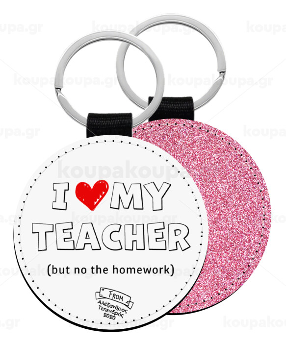 i love my teacher but no the homework outline, Μπρελόκ Δερματίνη, στρογγυλό ΡΟΖ (5cm)