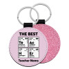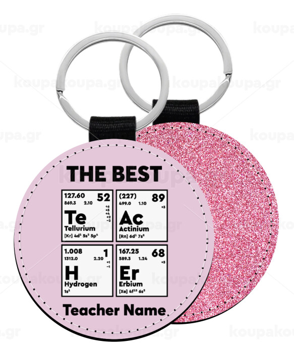 THE BEST Teacher chemical symbols, Μπρελόκ Δερματίνη, στρογγυλό ΡΟΖ (5cm)