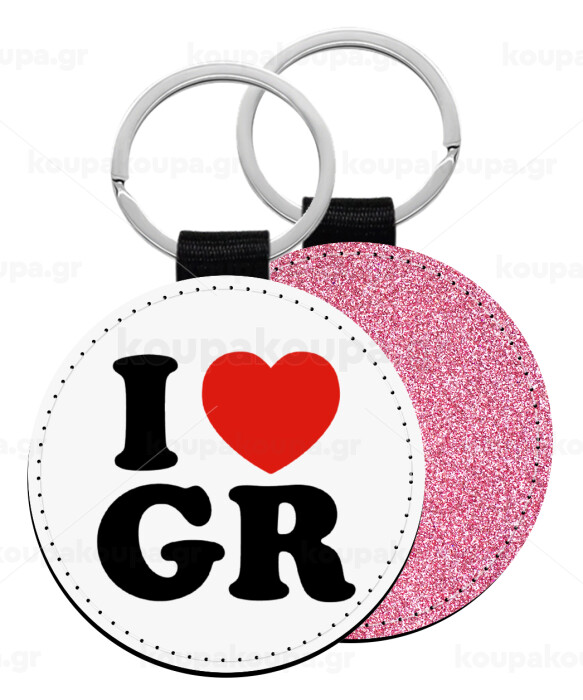 I Love GR, Μπρελόκ Δερματίνη, στρογγυλό ΡΟΖ (5cm)