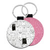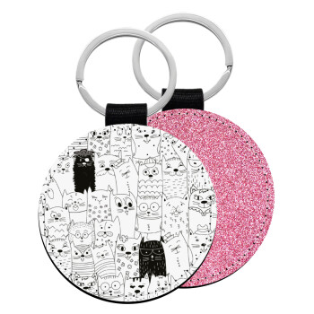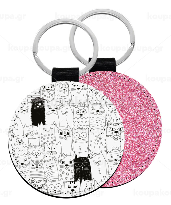 Γάτες γραμμικό σχέδιο, Μπρελόκ Δερματίνη, στρογγυλό ΡΟΖ (5cm)