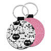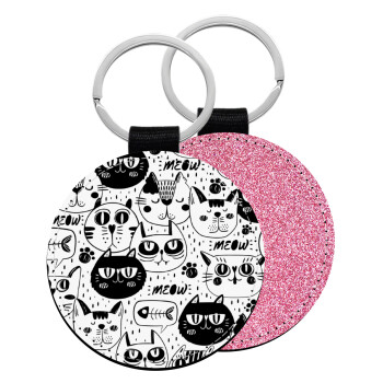 Γάτες, Μπρελόκ Δερματίνη, στρογγυλό ΡΟΖ (5cm)