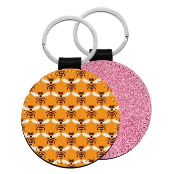 Μελισσούλες, Μπρελόκ Δερματίνη, στρογγυλό ΡΟΖ (5cm)