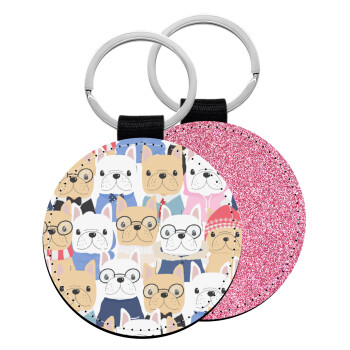 Σκύλοι, Μπρελόκ Δερματίνη, στρογγυλό ΡΟΖ (5cm)