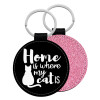 Home is where my cat is!, Μπρελόκ Δερματίνη, στρογγυλό ΡΟΖ (5cm)