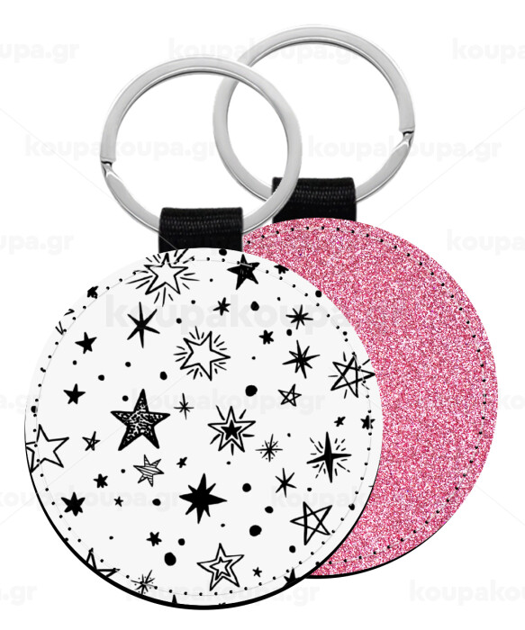 Doodle Stars, Μπρελόκ Δερματίνη, στρογγυλό ΡΟΖ (5cm)