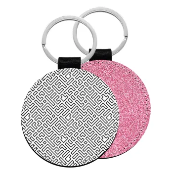 Doodle Maze, Μπρελόκ Δερματίνη, στρογγυλό ΡΟΖ (5cm)