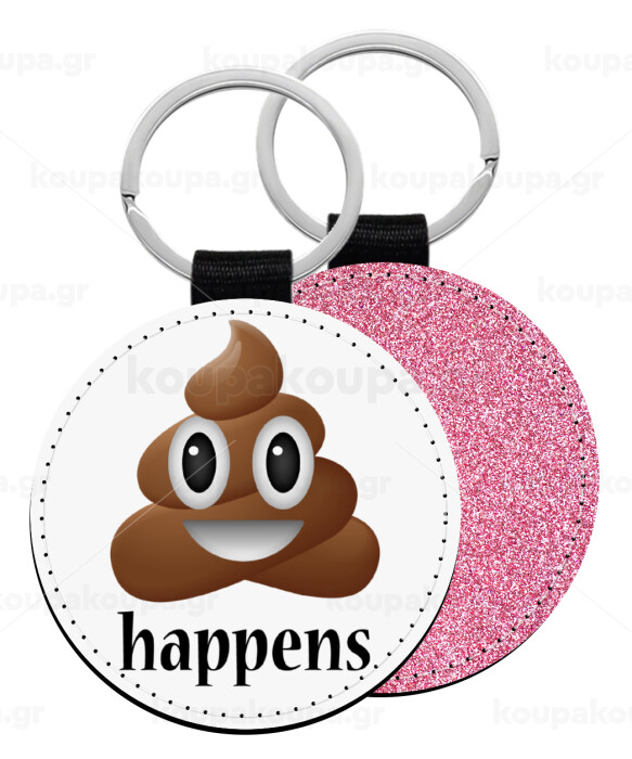 Shit Happens, Μπρελόκ Δερματίνη, στρογγυλό ΡΟΖ (5cm)