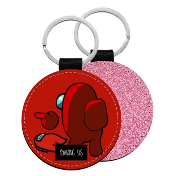 Among US i am impostor..., Μπρελόκ Δερματίνη, στρογγυλό ΡΟΖ (5cm)
