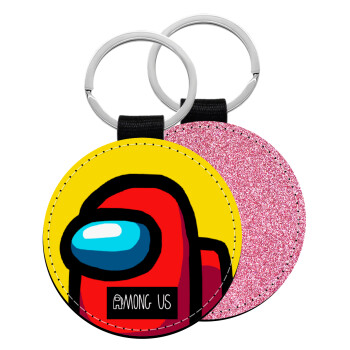 Among US, Μπρελόκ Δερματίνη, στρογγυλό ΡΟΖ (5cm)