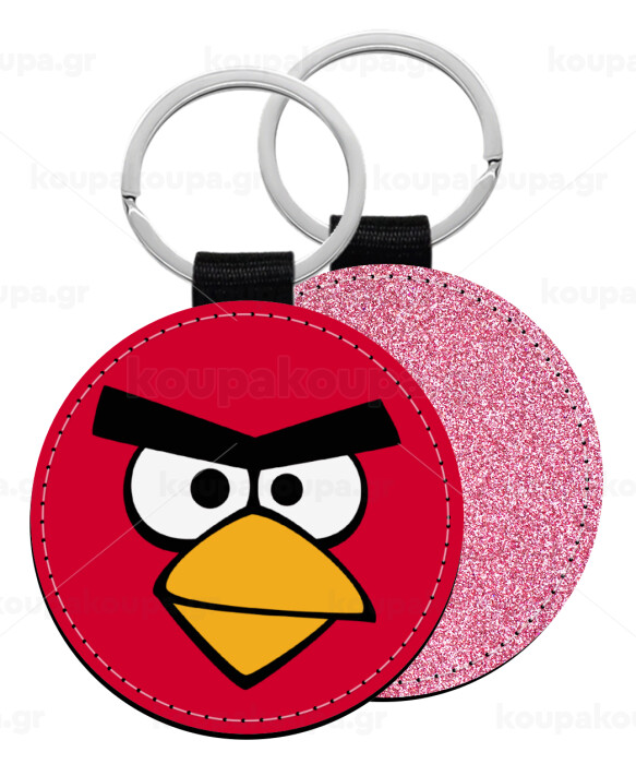 Angry birds eyes, Μπρελόκ Δερματίνη, στρογγυλό ΡΟΖ (5cm)