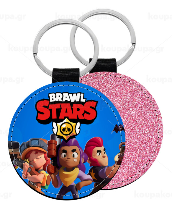 Brawl Stars Blue, Μπρελόκ Δερματίνη, στρογγυλό ΡΟΖ (5cm)