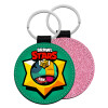 Mπρελόκ από δερματίνη με glitter στην μία πλευρά και στην άλλη δερματίνη μεγάλης αντοχής. Κρίκος ασφάλειας για τα κλειδιά.