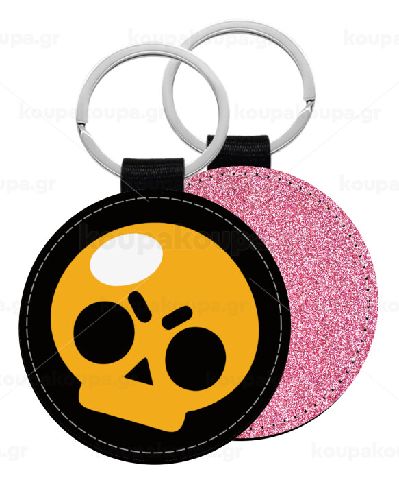 Brawl Stars Skull, Μπρελόκ Δερματίνη, στρογγυλό ΡΟΖ (5cm)