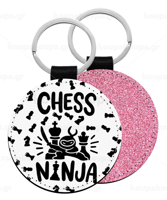 Chess ninja, Μπρελόκ Δερματίνη, στρογγυλό ΡΟΖ (5cm)