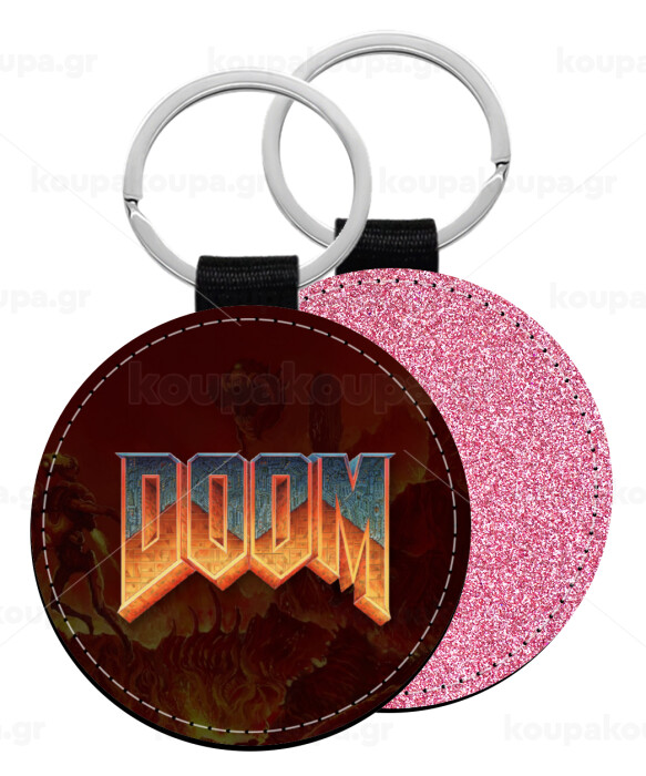 DOOM, Μπρελόκ Δερματίνη, στρογγυλό ΡΟΖ (5cm)