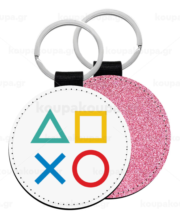 Gaming Symbols, Μπρελόκ Δερματίνη, στρογγυλό ΡΟΖ (5cm)