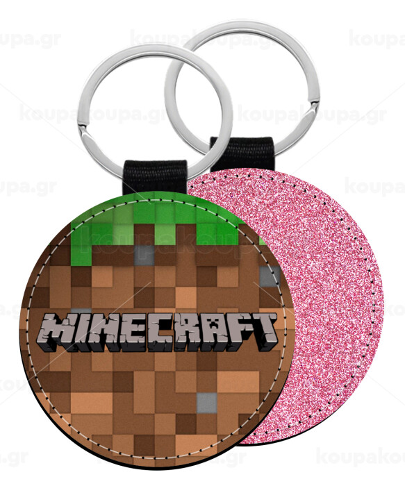 Minecraft dirt, Μπρελόκ Δερματίνη, στρογγυλό ΡΟΖ (5cm)