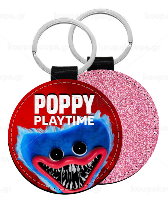 Poppy Playtime Huggy wuggy, Μπρελόκ Δερματίνη, στρογγυλό ΡΟΖ (5cm)