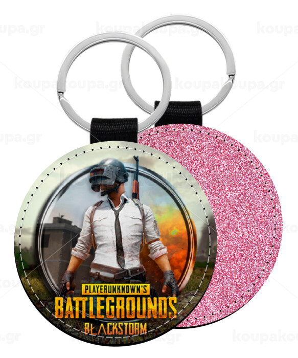 PUBG battleground royale, Μπρελόκ Δερματίνη, στρογγυλό ΡΟΖ (5cm)