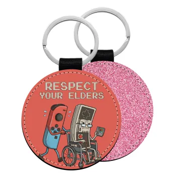 Respect your Elders, Μπρελόκ Δερματίνη, στρογγυλό ΡΟΖ (5cm)