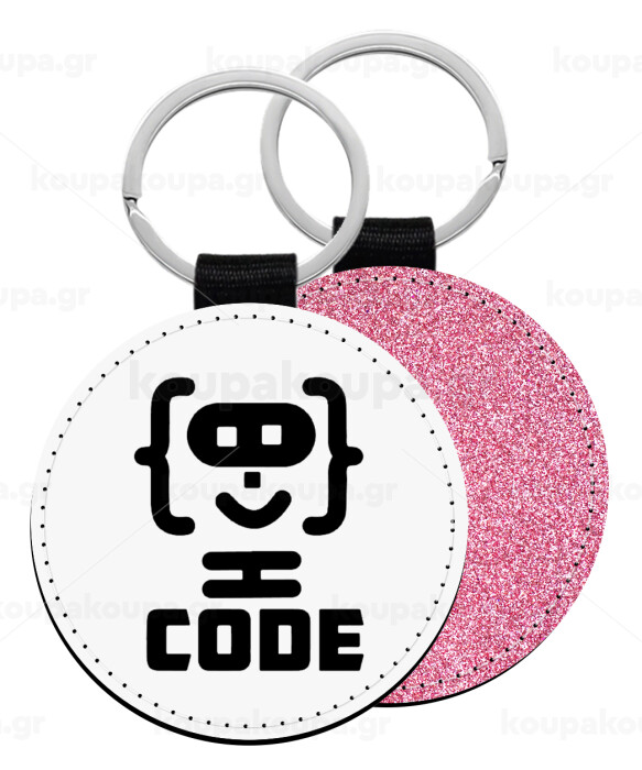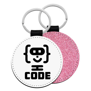Code Heroes symbol, Μπρελόκ Δερματίνη, στρογγυλό ΡΟΖ (5cm)