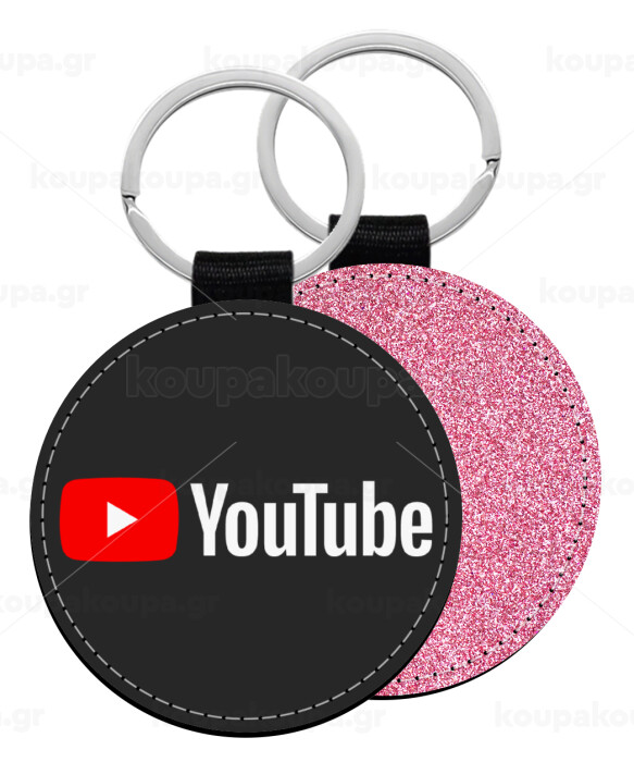 Youtube, Μπρελόκ Δερματίνη, στρογγυλό ΡΟΖ (5cm)